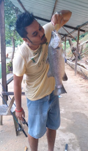 Saran with his Barramundi at the Serdang Pond