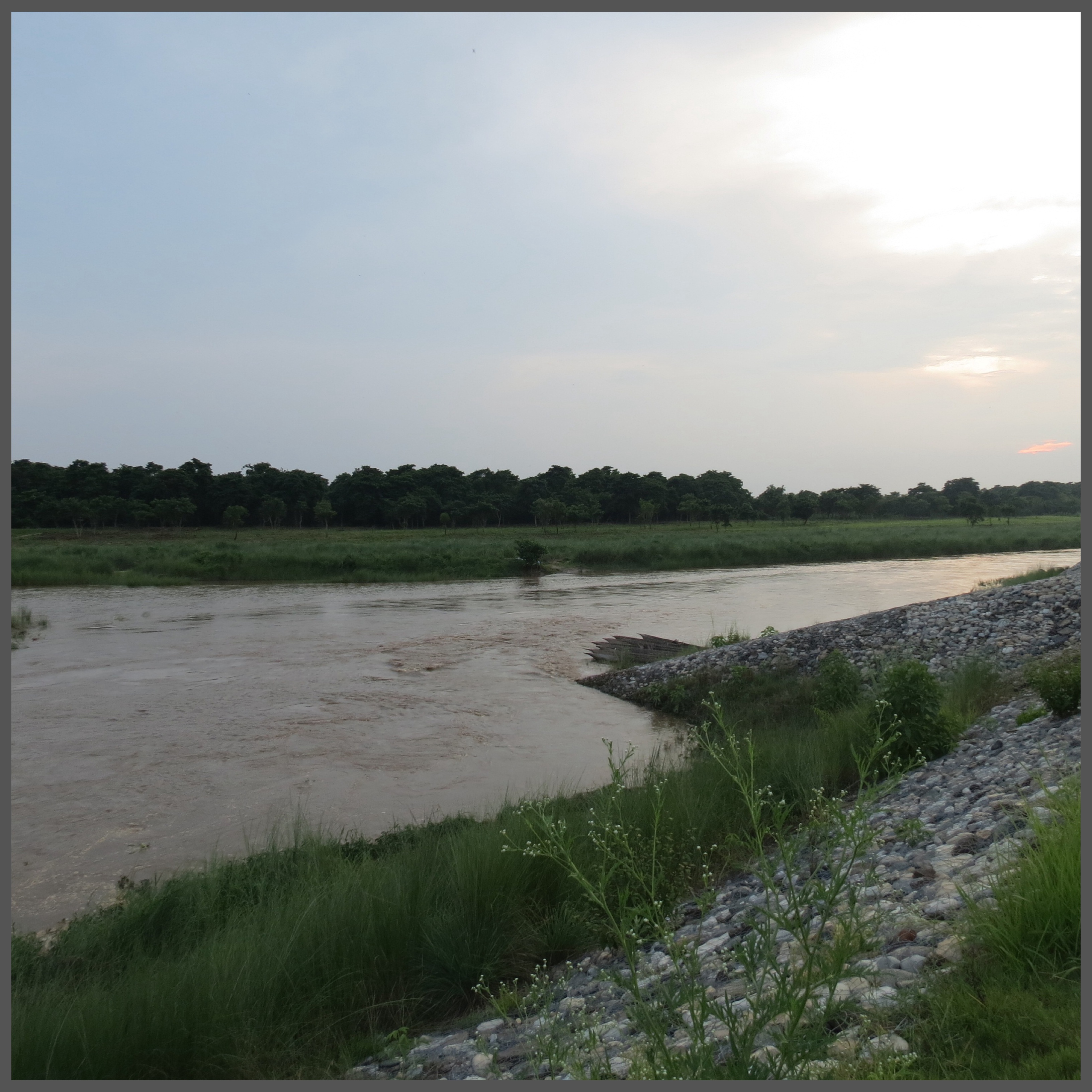 Next stop was the Elephant stable, a short walk into the jungle, feeling very Lara Croft with my husband excited to bond with the animal he loves. When the tourist brochure indicated that the animals are wild, we were take aback by the chains on some of the Elephants bred for transport purposes into the jungle… They however trumpet freely. Evidently by the shocking echoes of Elephant trumpeting through the jungle. What an experience that was! We marched on towards the sunset point right by the Rapti River overlooking the Royal Chitwan National Park, which we were to embark on a wild adventure in, the next day. We saw locals fishing, enquired on their catch report and walked through the dense jungle, being wary of wild animals that could pose a danger. Hiding behind tall grass, we saw a few wild peacocks and an aged elephant roaming around. With the heavy monsoon clouds looming above, the sunset was quick yet beautiful. The nature walk experience was by far mildly frightening, wildly fun and an eye opener. Very glad we didn’t end up in an episode of “Animals gone wild”. Back to the hotel for another hearty dinner, relaxing amidst the sounds from the jungle with a cup of Chai before heading to bed, gearing up for an early morning.